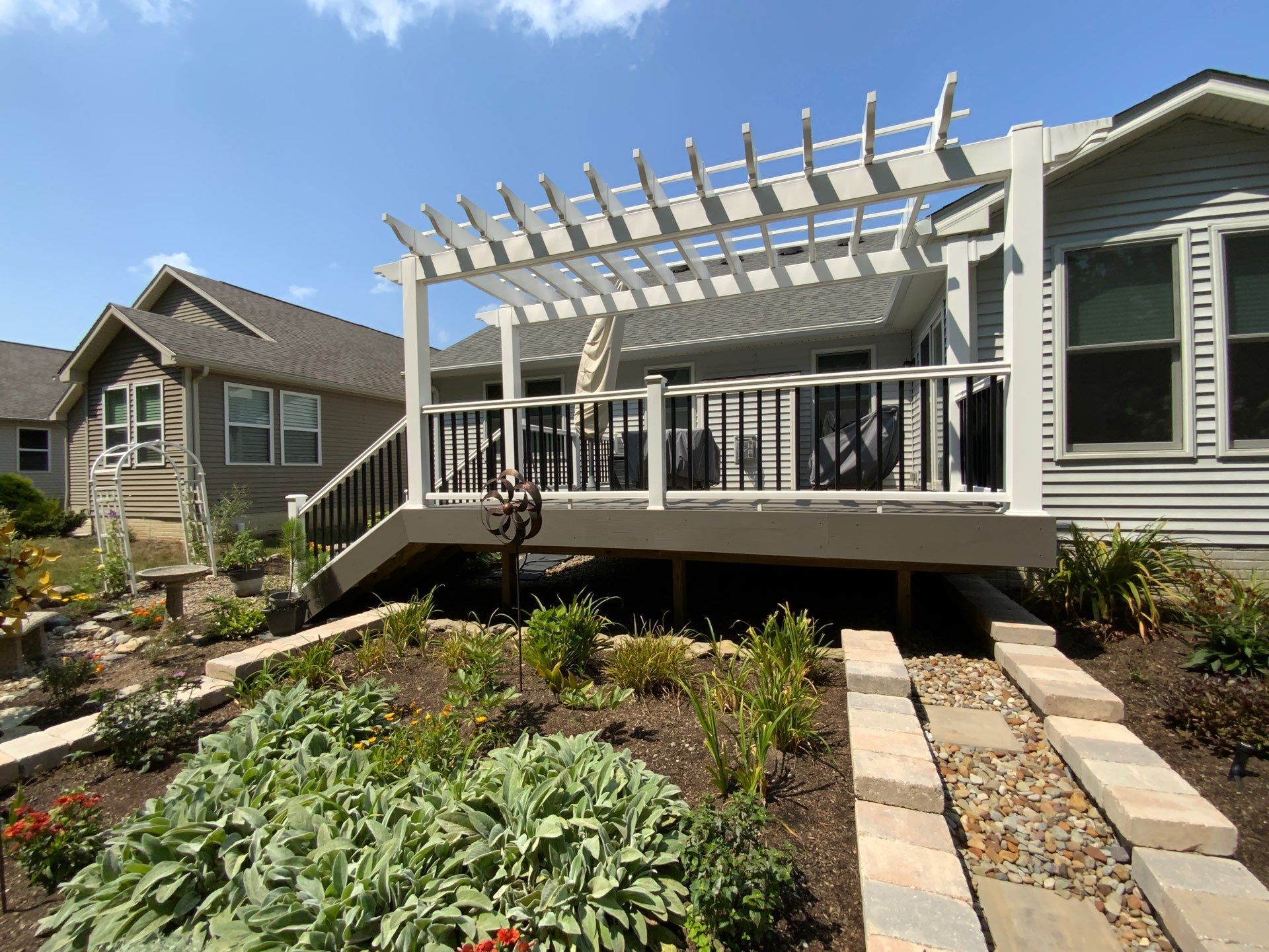 Add style to your outdoor living space or garden by adding a freestanding or attached pergola. Pergolas provide shade and add aesthetical beauty to your yard.